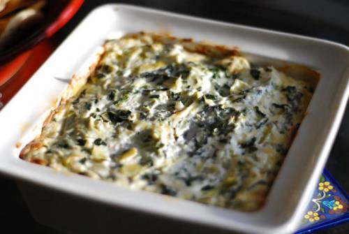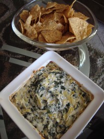 Who does not like spinach and artichoke dip?  With tender artichokes surrounded by a hot, bubbly and creamy spinach mixture, what is not to love?  Whenever I am at a restaurant and I see spinach and artichoke dip on the menu I HAVE to order it.  My recipe is an attempt at re-creating the dip that I love, but making it a bit more health conscious. That way I don’t feel guilty making it for my family and friends all the time.  It’s made with spinach and artichokes which are good for you, right?
