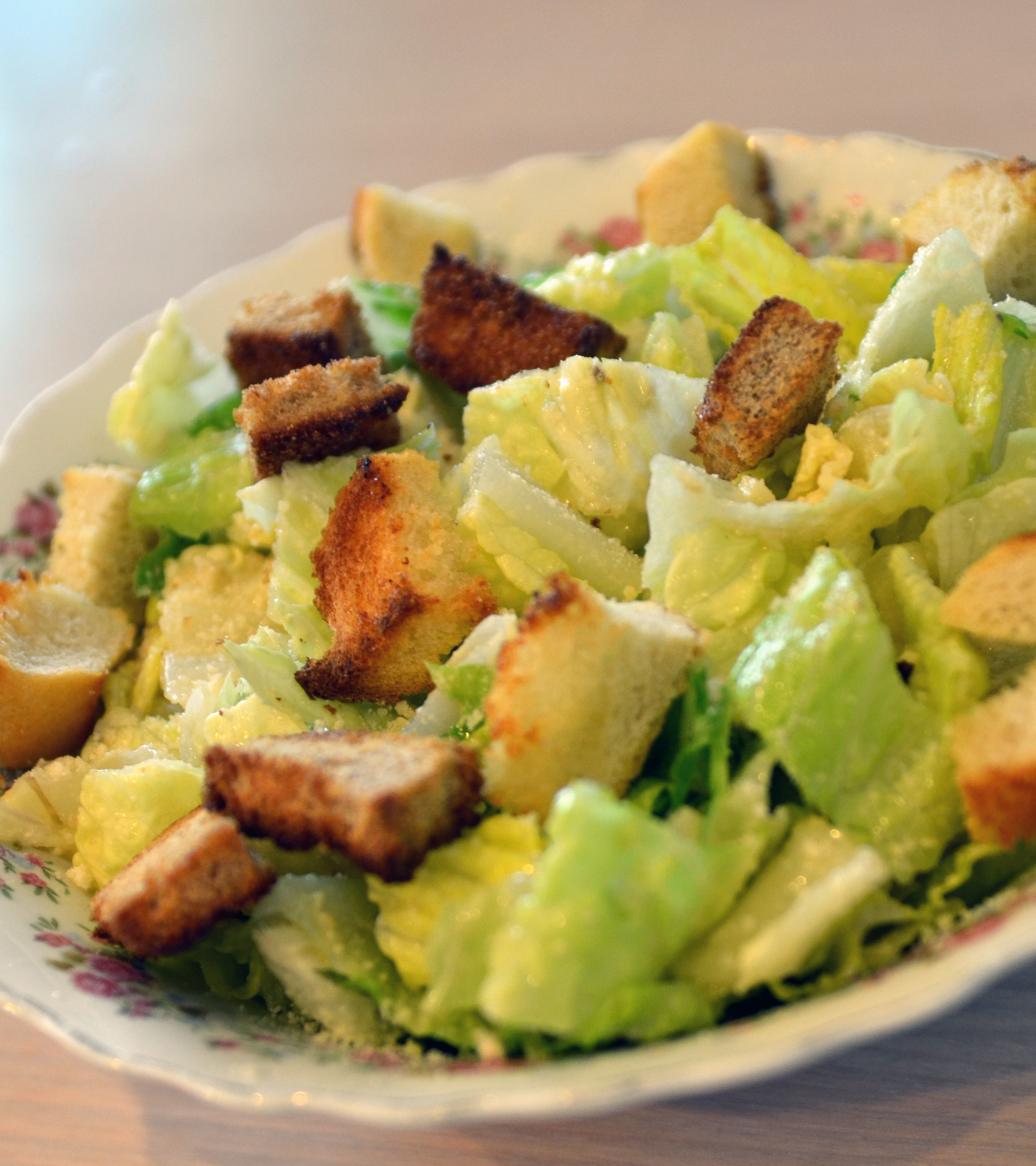 3 responses to “Caesar Salad With Garlic Bread Croutons