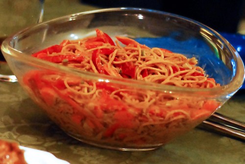 for me to pick the recipe. My favorite food is easily Italian – pizza, pasta, ziti, lasagna. I love it all! The best part of Italian food is the red sauce. I don’t know what it is about this sauce – the garlic, the tomatoes, the basil. I am not sure but it is a combination that I love and crave. It is also nice in that it is so, so easy to prepare. Once I realized how simple it is to make this sauce I never went back to jarred sauce (many have a lot of sugar, salt and/or preservatives). That and my husband grew up in Brooklyn and eating jarred sauce is blasphemy. Hopefully, once you try the recipe you will feel the same.